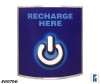 Airport Charging Station Sign, Blue and Silver Graphic on Curved Wood Frame, Top and Bottom are Cut-Out for Pole Mounting