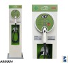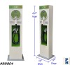 Electric Car Charging Station, White Tower with Round Green Panel, EV Outlet Sign on Rear of Tower