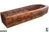 Coffin, Wood with Rectangular Cut-Out Hole with Jagged Edges, Carved Symbols and Letters on the Top and Sides