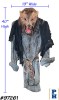| Costume with Werewolf Mask, Blue Splattered Shirt with Belt, Distressed and Tattered Black Garment Over Shoulders |