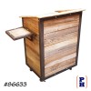 Maitre D' or Hostess Station, Reclaimed Wood Planks, Angle Iron Frame Top Shelf is Clear Plexi Covered, Folding Side Wing Shelf |