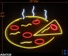 | Neon Sign, Pizza, Whole with Slice at Right, Yellow and Red with White Steam, Includes Built-In Dimmer |