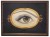 Sign, Left Eye, Blue Eye on Black Background, Brown Metal Studded Frame