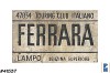 Sign, "Ferrara", a City in Italy, Distressed White with Black Letters, Metal