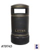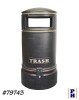 Trash Can, Black Plastic with Gold Trim Trash Openings on Both Sides |