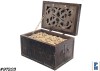 | Treasure Chest, Pirate Style, Square, Dark Wood with Gold Coins and "1536" Painted on the Front |