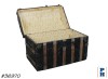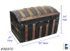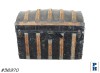 Treasure Chest, Pirate Style, Black with Wood Trim, Old Steamer Trunk with Wallpaper Interior |